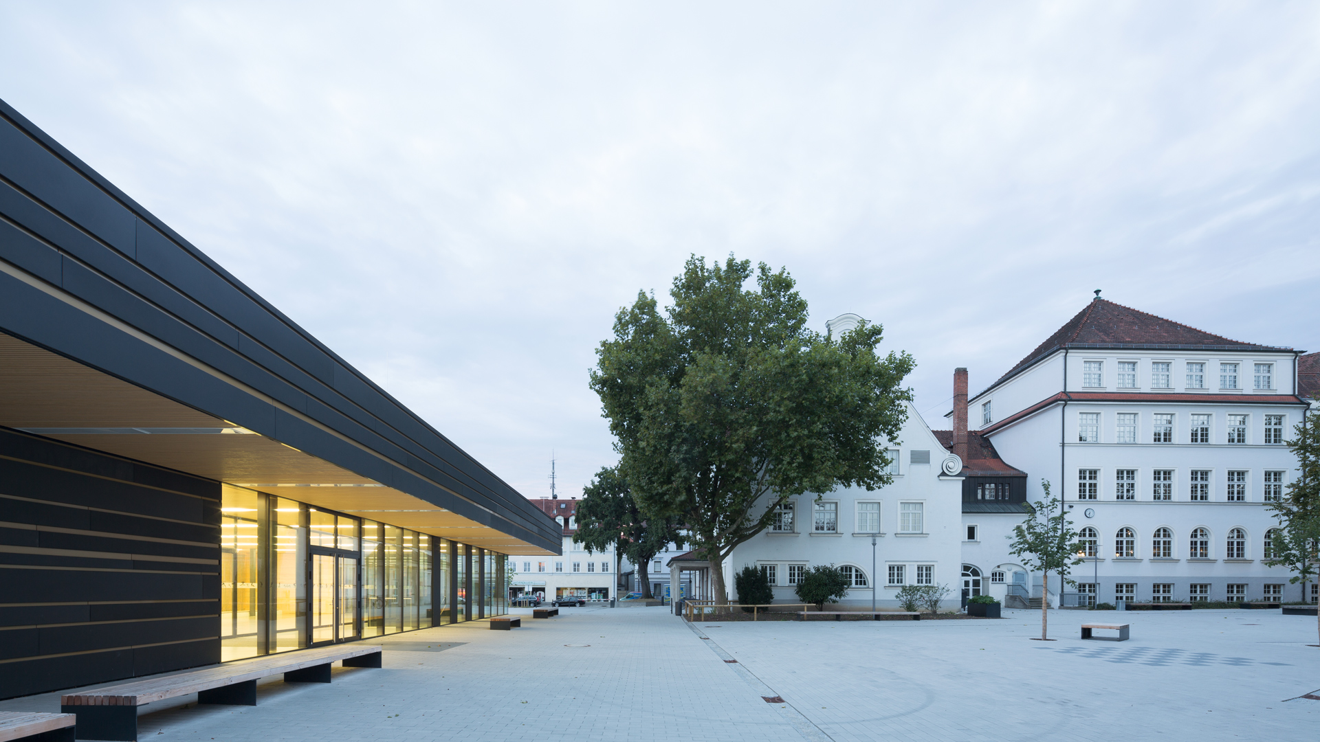 Der Neubau der Dreifachsporthalle und die Jakob-Sandtner-Realschule bilden zusammen mit dem Wasserturm ein neues städtebauliches Ensemble.